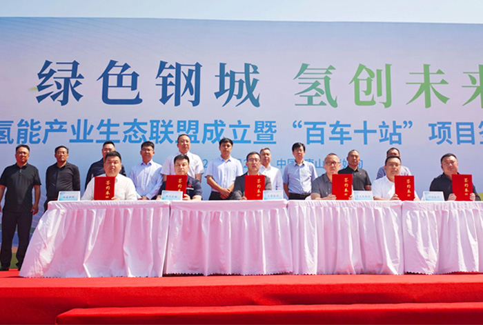 5月28日,“綠色鋼城,氫創(chuàng)未來——京津冀氫能產(chǎn)業(yè)生態(tài)聯(lián)盟成立暨‘百車十站’項目簽約交付儀式”在唐山曹妃甸舉行,